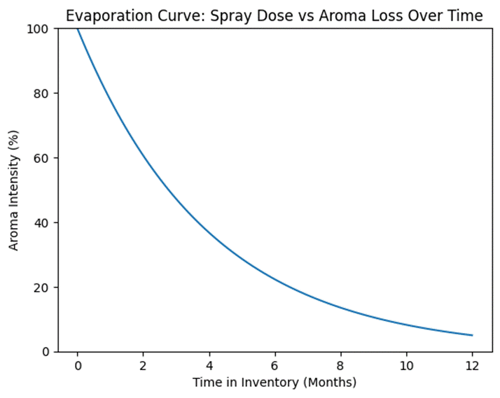 Evaporation Curve Diagram (spray dose vs aroma loss over time)